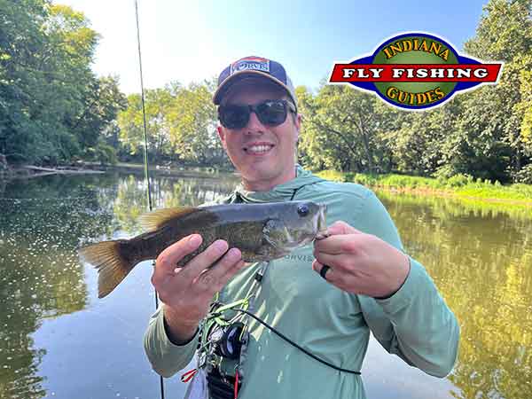 After taking a week off of guiding to be involved in an incredible jazz recording project (The Gennett Suite Project), I got back on the river. Low, clear water is a favorite of mine. If you are quiet and polite the fish will show themselves and you'll get to see the whole operation... the chase, the eat, and the battle. And speaking of quiet and polite, my friend Joe Smith (Project Healing Water, Heartland Flyfishing Festival) joined me for a float. It was another banner day! With my raft slipping along nearly silently, Joe dug out fish after fish on the Wounded Minnow and on topwater. If I had to choose one fly for warmwater flyfishing it would be my Wounded Minnow. You can buy them at Orvis in Clay Terrace or directly from me for custom orders. ~jc