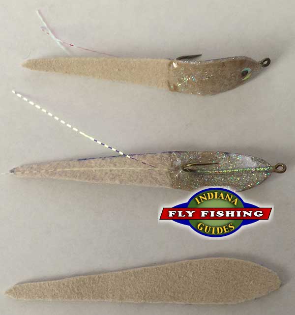 FINALLY!!! After 18 trip cancellations and another 12-15 trips turned down due to unsuitable fishing conditions on the White, Sugar, Tippi and Brookville, we got out on the upper White and had a nice day of fishing. Don and Fred from Indianapolis Flycasters won a trip when I did a presentation at the IFC meeting a few months ago. They are great guys, good anglers, and fun to have in the boat. The day started at 1pm on the upper White. We had interrmittent clouds and then bright sun. We started with a wiggle minnow in the front of the boat (to test agression) and an olive subsurface in the back. They both got some chases, and the subsurface got eaten a few times. Then the wiggle minnow started to produce, proving to me that the fish had some aggression during the midday hours, so we switched the back of the boat to a topwater in black. Both flies continued to work throughout the afternoon, with a lull between 6 and 7. It wasn't a fast fishing day, but it was steady, with topwater and wiggle minnow action lasting until the final cast at about 8:45pm 150 feet from the boat ramp. Happy day! I slept better than I had in months. ~jc