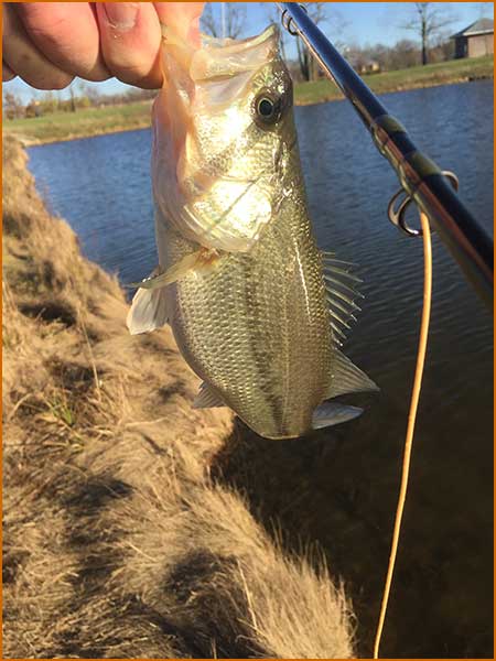 Pete came up from Bloomington for a lesson that his cool Daughter bought for him. He's a smart and inquisitive guy and was clearly already "bitten" by flyfishing. We did the classroom work of "equipment/tactics/flies/knots"and then headed out to work on casting. Pete caught on so well and so quickly that I decided to run him to a pond. Needless to say, he caught several fish including this decent largemouth, and "bitten" became "gut-hooked". ~jc