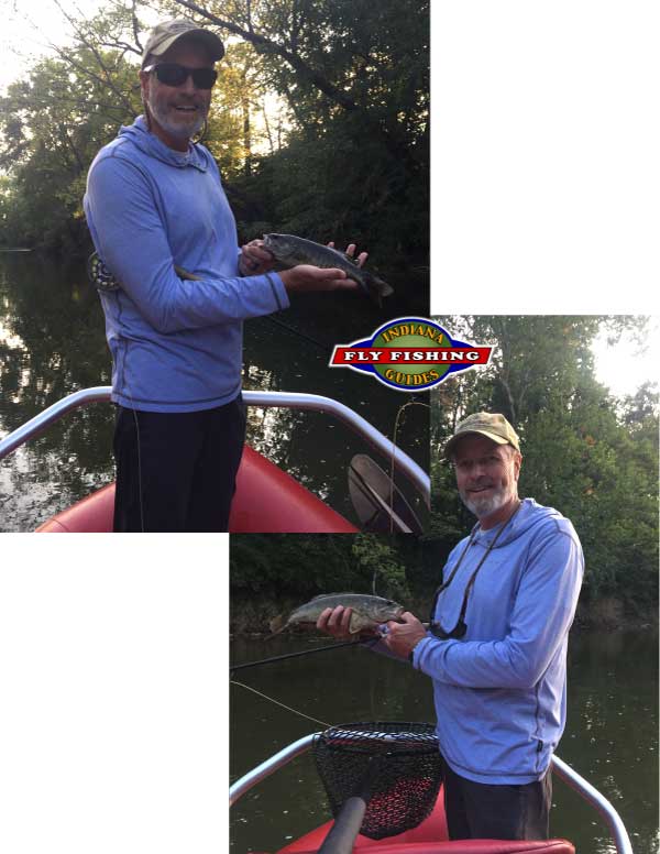 My buddy Rob was in town staying at my place. I visit him every year in Tampa to redfish and he comes back to Indiana every Fall for a visit. We floated 2 days while he was in town... once just us and once with Eddie joining us. We caught plenty of fish in the low, clear September water using topwater, Conrad's Wounded Minnows, and small Murdich's. It was hoot being on the river with my old buddies. ~jc