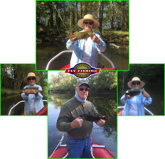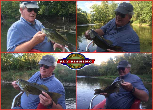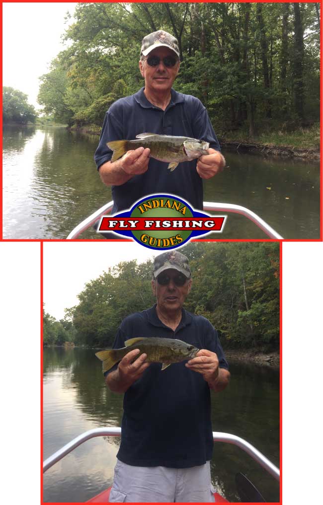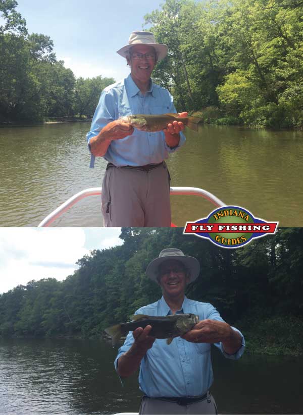 I took Pete Greenan (www.floridaflyfishing.com) and Joe Smith, Project Leader of Indiana Project Healing Waters on a float on the upper White. We dug hard to find fish, but we got some nice ones and had a great day. Now that the water is low and clear, I can see that the repeated flooding this year has not been good for the upper river. About 2 miles of the section below Lafayette Trace is flattened out. The holes are filled in, the river is largely a uniform depth and the river channel has widened. The larger holes (the ones with big rocks) are still there (albeit shallower than before), but the many "depressions" that were in that section are filled in and flat. That stretch will largely be "row thru" (or possibly "drag-thru") water once the levels drop to normal Summer flows. We did manage several fish on Wiggle Minnows, Purple Darters, and Boogle Poppers in the lower section. A great day with a couple of good friends. ~ jc