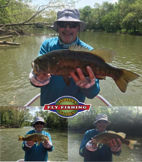Penny & Bill are friends and super-volunteers from CFR. They live in northern Indiana and are deeply involved in Little Elkhart River and their Trout Unlimited chapter, LECTU.org. I was surprised to learn that this was the first time they had ever flyfished for Smallmouth. They won a float in an auction at the Flyfishing Film Tour. It took us a long time to get the float on the books but we finally got it done. We had a beautiful day for fishing and a little rain had put some flow back in the river. Since the water was still low and clear, we started with small flies. The tan Dying Minnow in a 2.5" version got attacked immediately and Penny was into the first fish of the day within sight of the boat ramp. Bill was fishing a slightly longer version (3.25") and getting follows but no takers. As the day progressed, the water warmed and brought more fish out to play. And, later in the day, as the sun faded into the western sky, we found some fish willing to attack topwater flies. We had a really nice day together. It is great to be with a couple that, after 50 years of marriage, are still best friends. ~jc